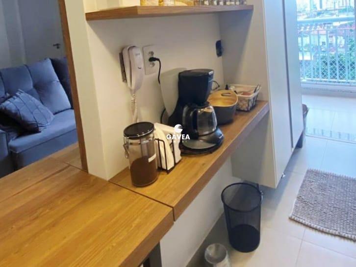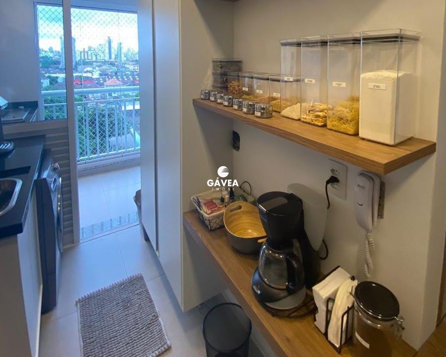 Cozinha: pedra integrada em todo o espaço, torneira flexível, armários planejados com 100% de aproveitamento do espaço, dobradiças com amortecedores e corrediças invisíveis, sistema touch (sem puxadores) em todas as portas, incluso o micro-ondas (novo), mesa de jantar e prateleiras de apoio para decoração.