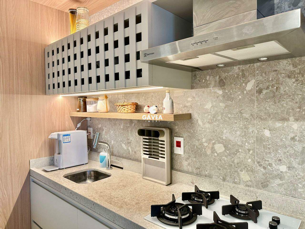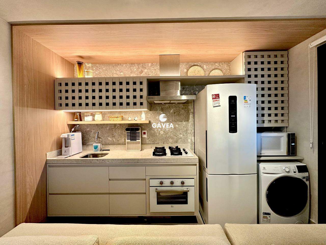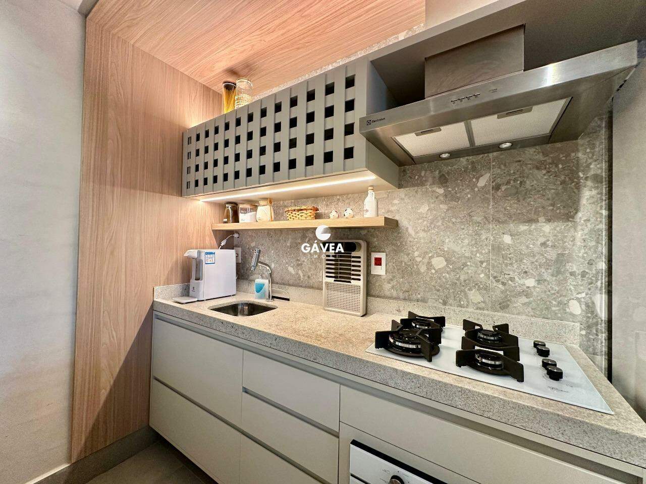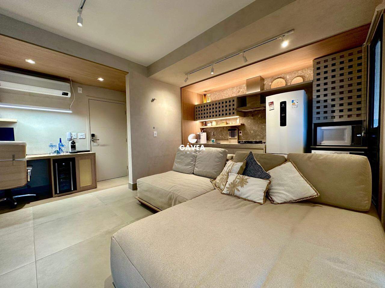 O apartamento conta com 1 suíte, lavabo, sala com cozinha integrada, varanda gourmet com churrasqueira a gás e um projeto lindo de alta qualidade, com iluminação ideal para cada ambiente e planejados de altíssimo padrão.