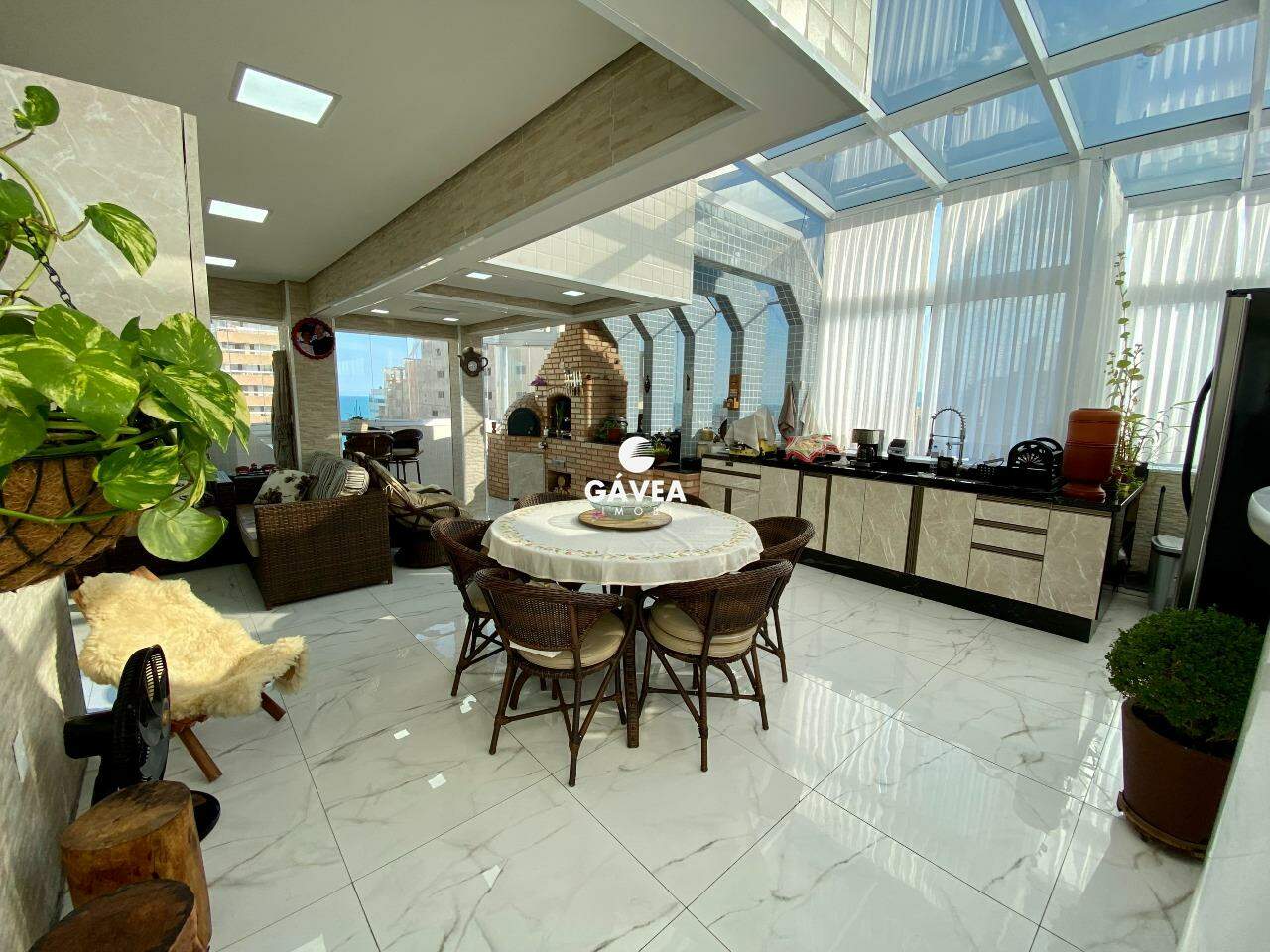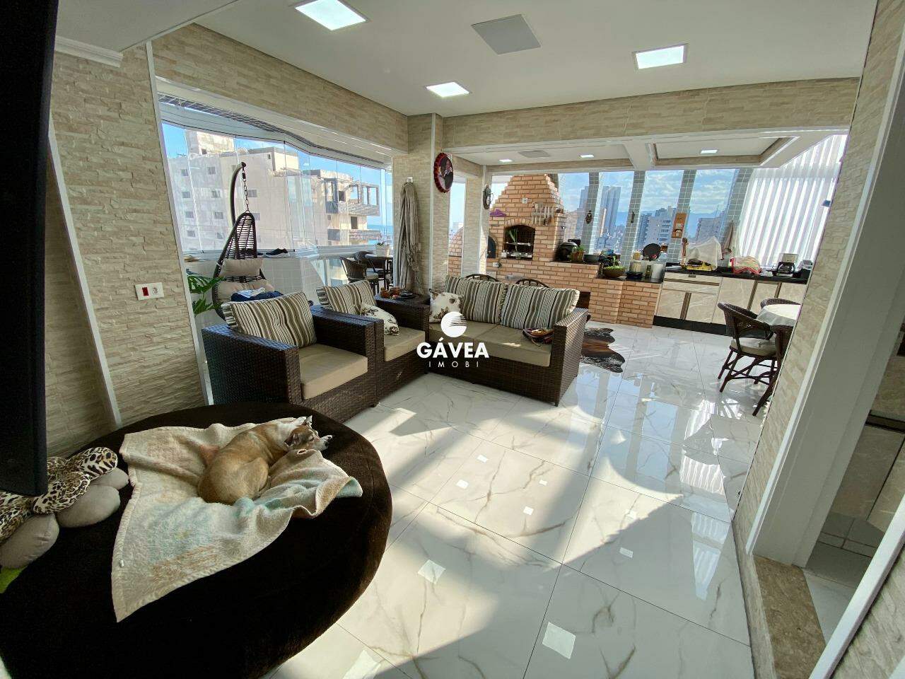 Cobertura recém reformada localizada no Canto do Forte, à 180m da praia, composta por: