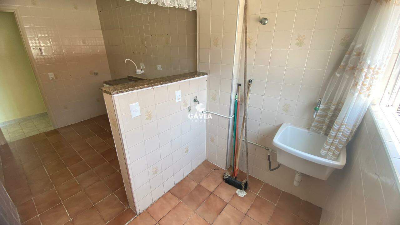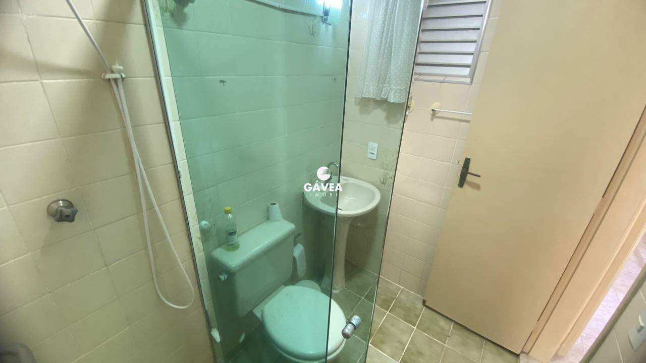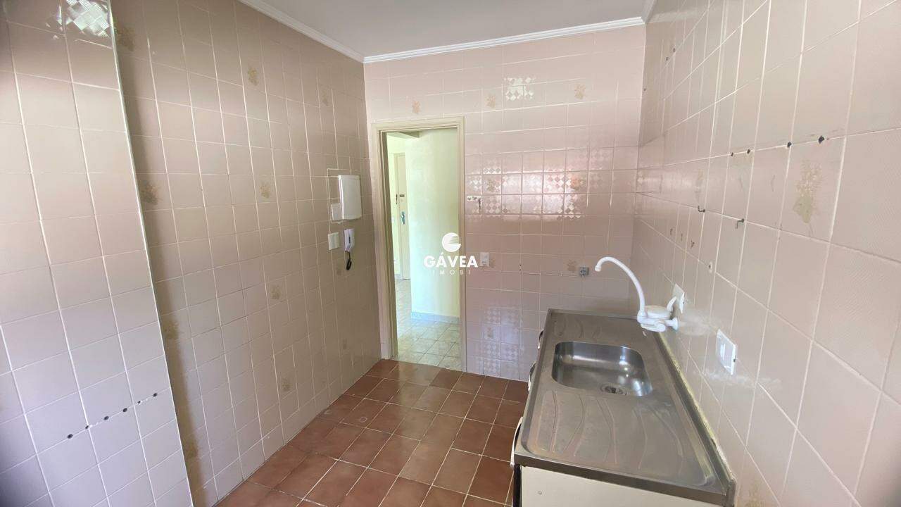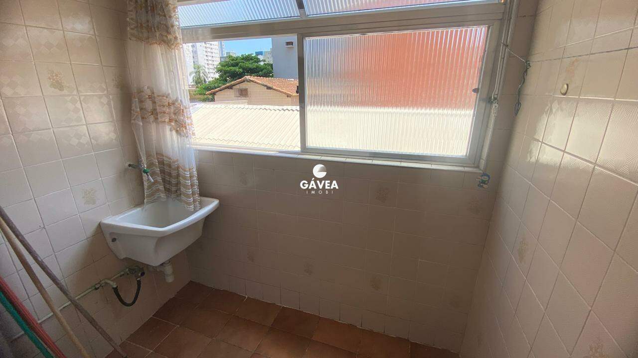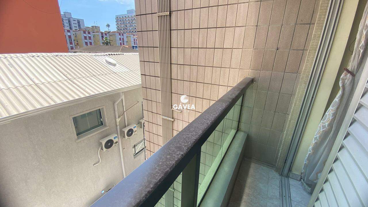 Apartamento de 1 dormitório com sacada, a apenas 350m da Praia do Gonzaguinha. Possui uma sala ampla em "L" para 2 ambientes com sacada, cozinha espaçosa e arejada, lavanderia com espaço para lavadora de roupas, e banheiro com box blindex. Conta ainda com 1 vaga de garagem.