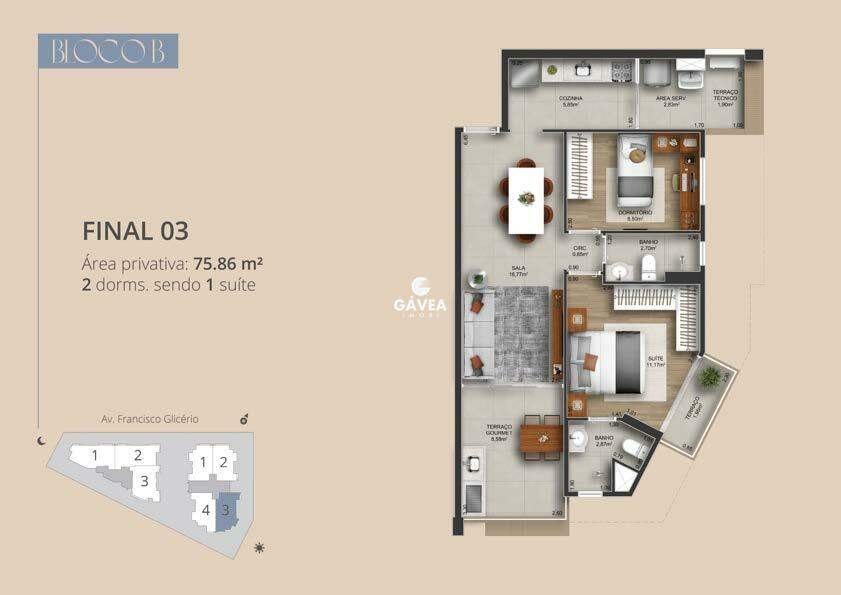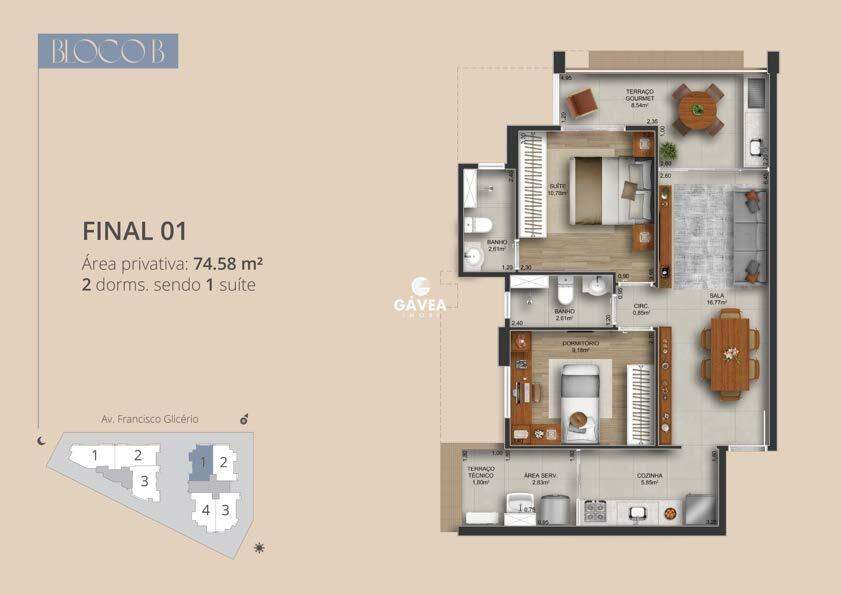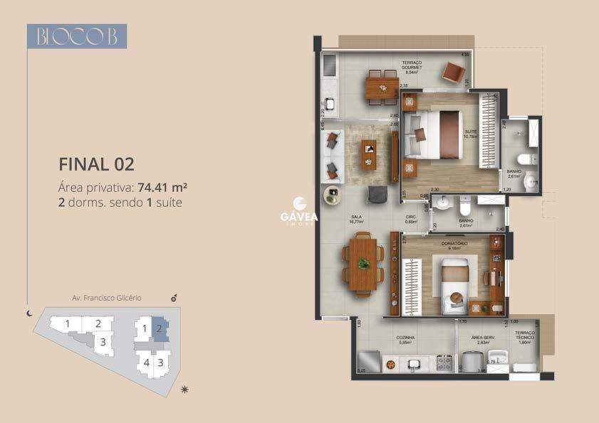 Com unidades de 2 a 3 dormitórios, metragens de 74 a 94 m², além de 7 coberturas no edifício.