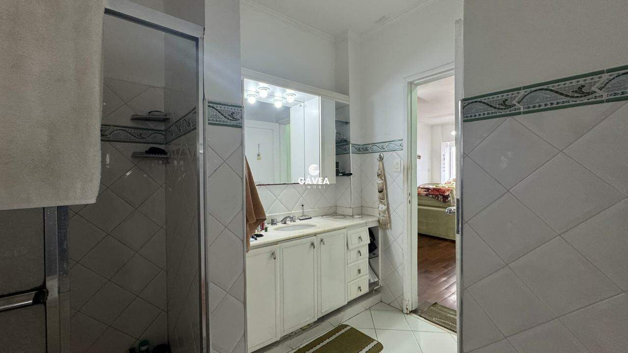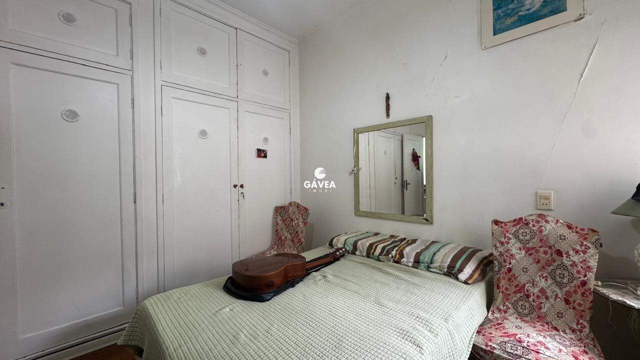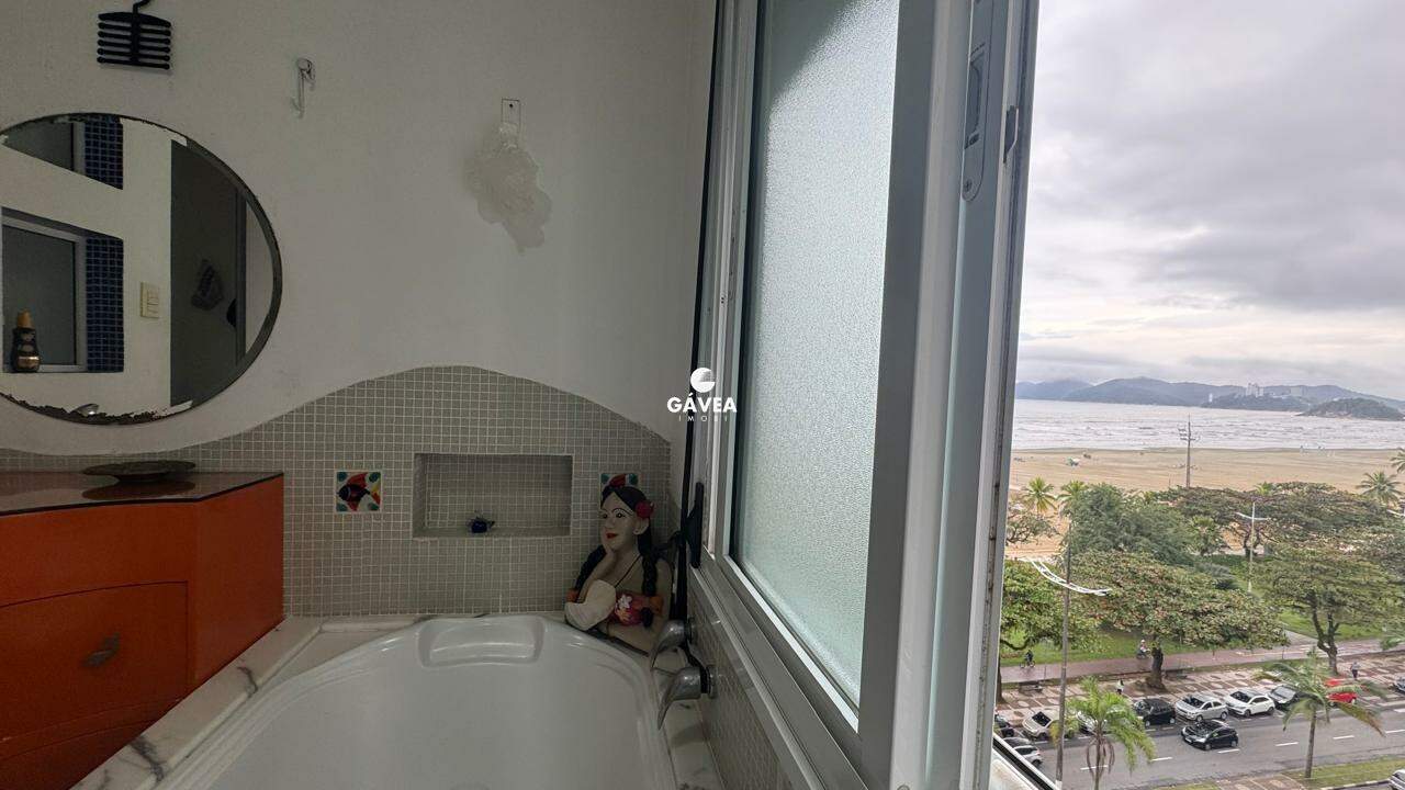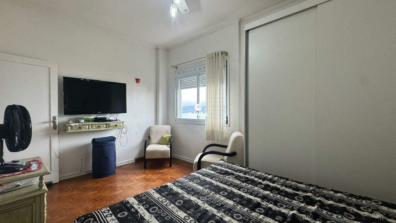 A sala ampla para dois ambientes também oferece vista mar, garantindo luminosidade natural e um ambiente arejado. Possui banheiro social, copa, cozinha funcional, área de serviço, dependência completa de empregada (DPC) e uma vaga de garagem com manobrista, trazendo ainda mais comodidade ao seu dia a dia.