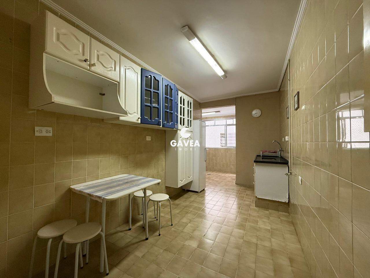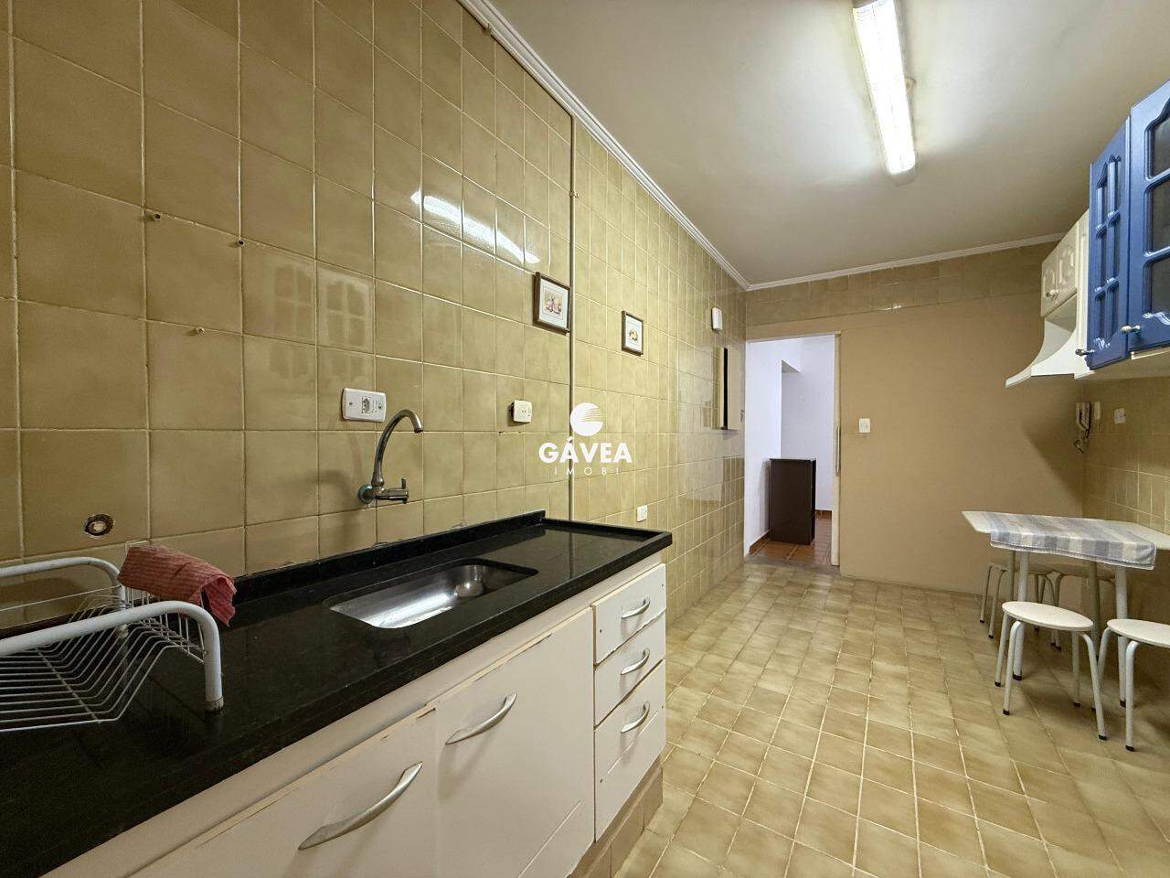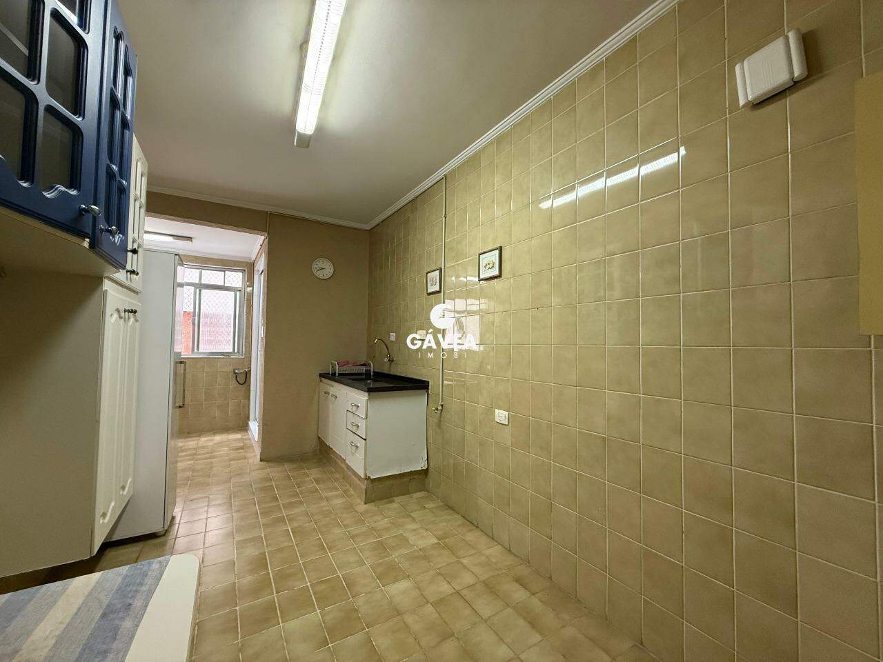 A cozinha é funcional e separada da área de serviço.