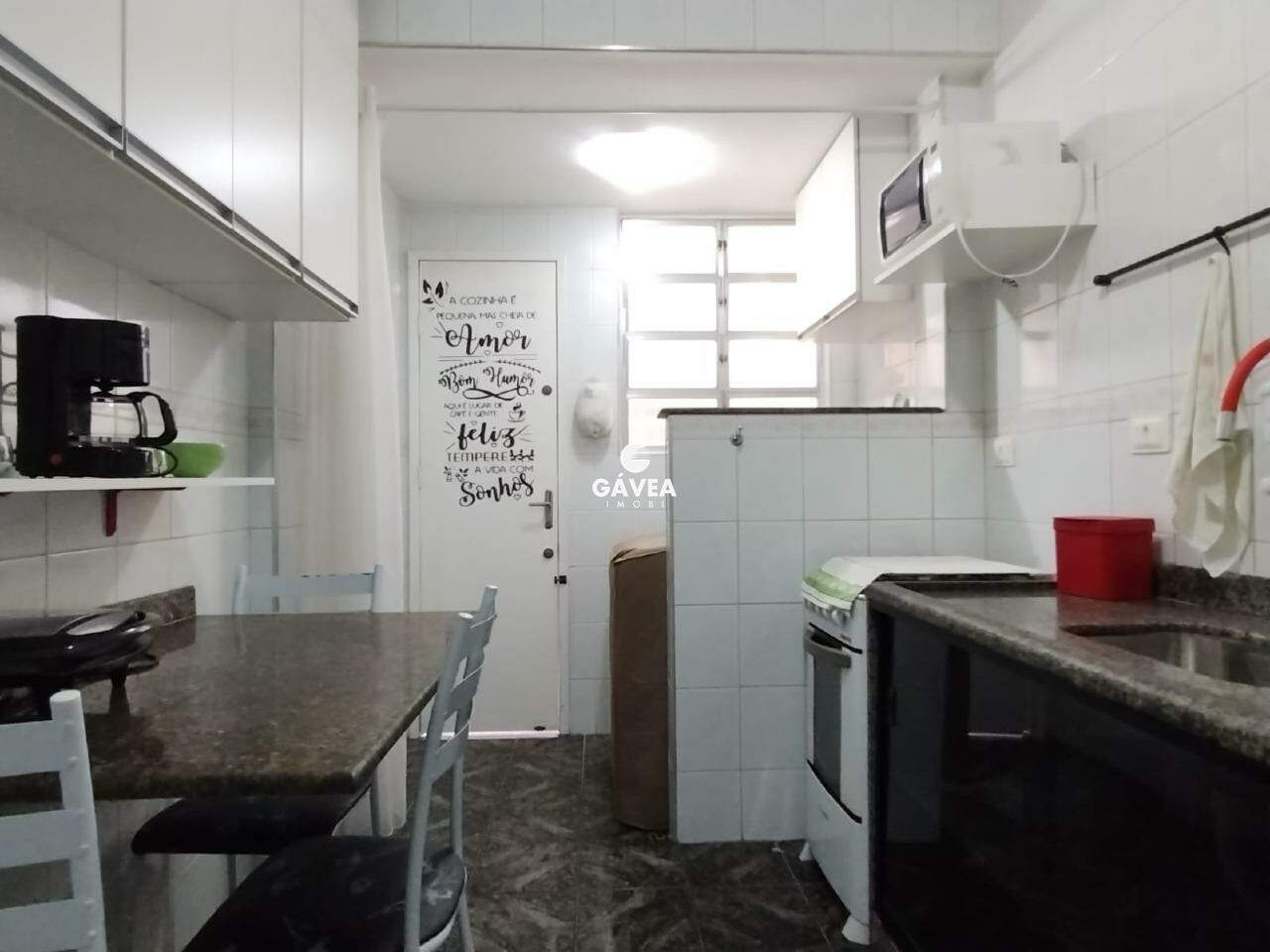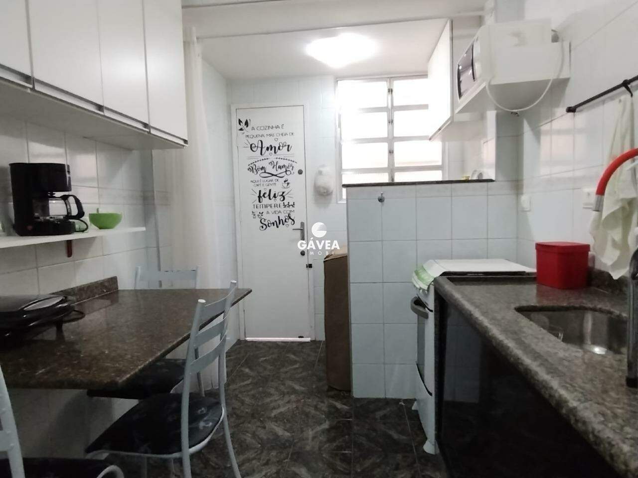São dois dormitórios amplos com armários, ambos com vista para o mar, sendo que um deles possui uma varanda perfeita para relaxar admirando o horizonte. A cozinha, também semi mobiliada, é conjugada com a área de serviço e conta com boa iluminação e ventilação natural, tornando o ambiente ainda mais prático e agradável.