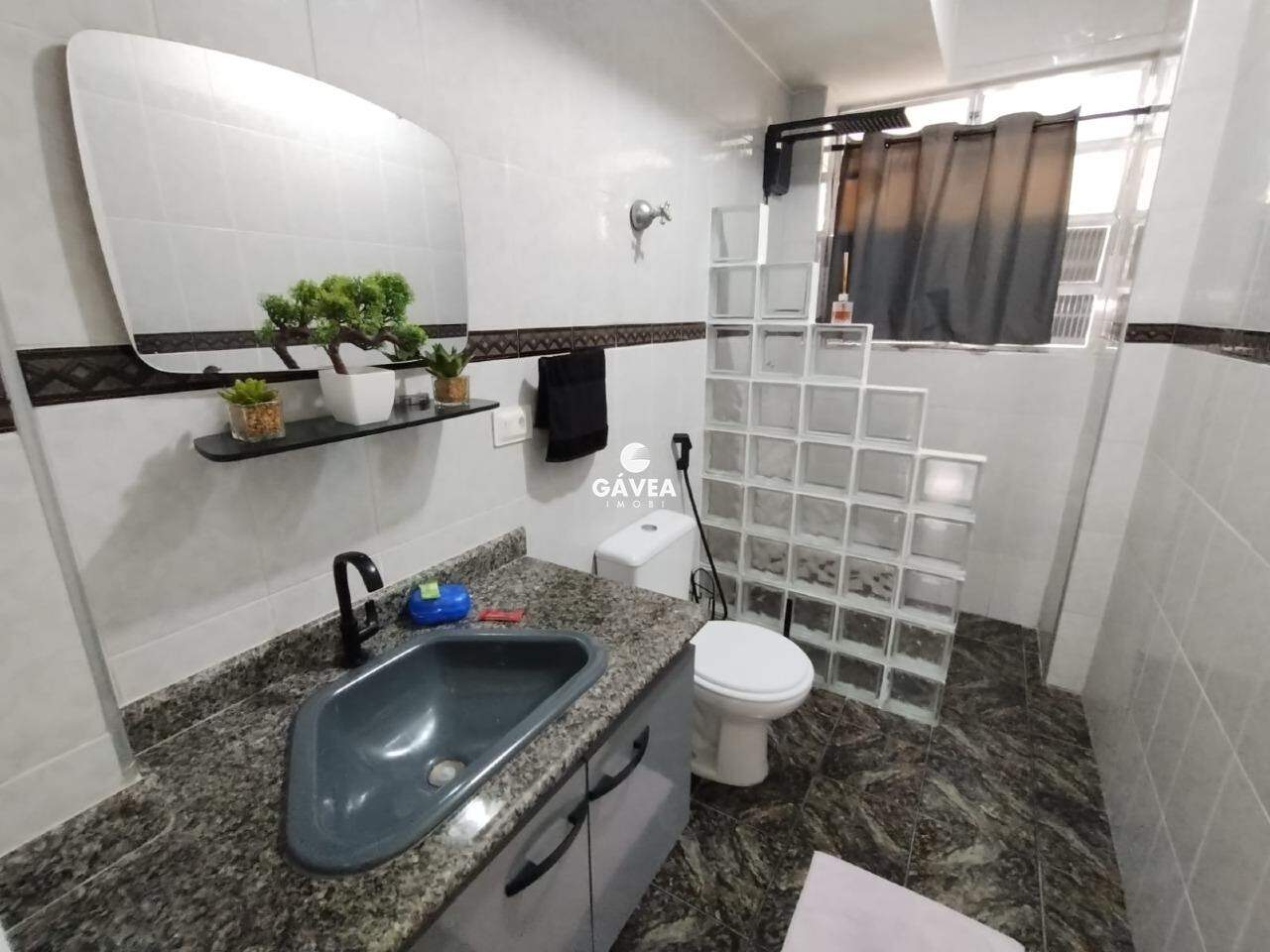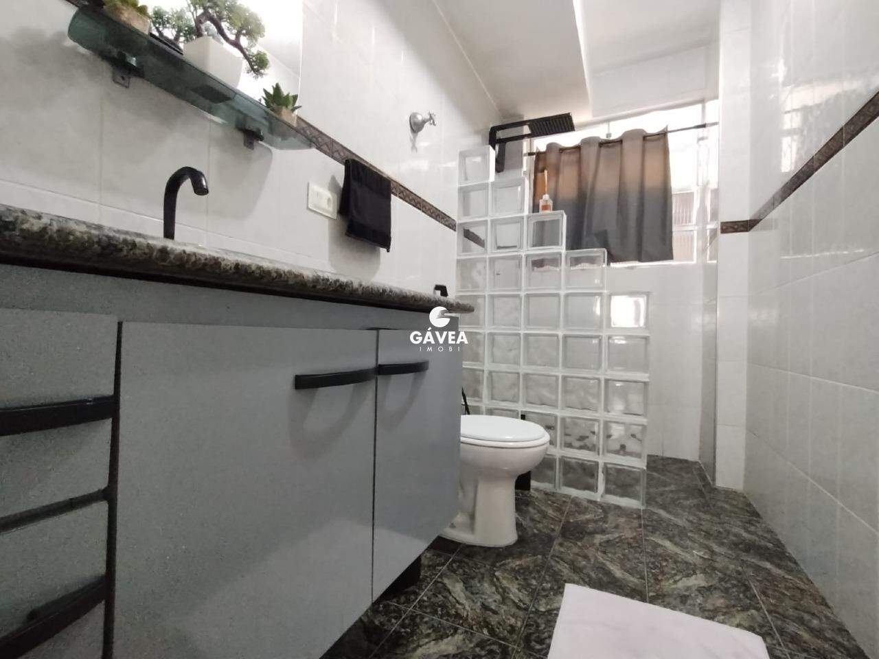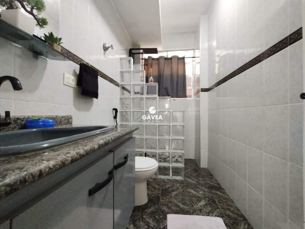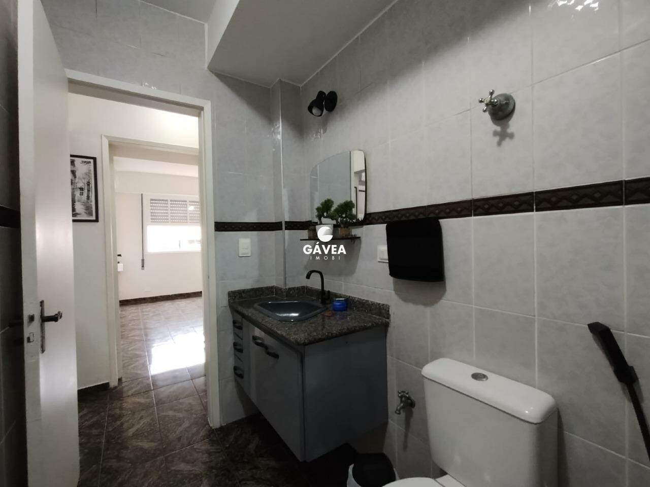 O banheiro social é espaçoso, com armários e ventilação natural, oferecendo funcionalidade e conforto. O imóvel conta ainda com gás canalizado, portaria 24 horas e uma vaga de garagem, garantindo segurança e comodidade.