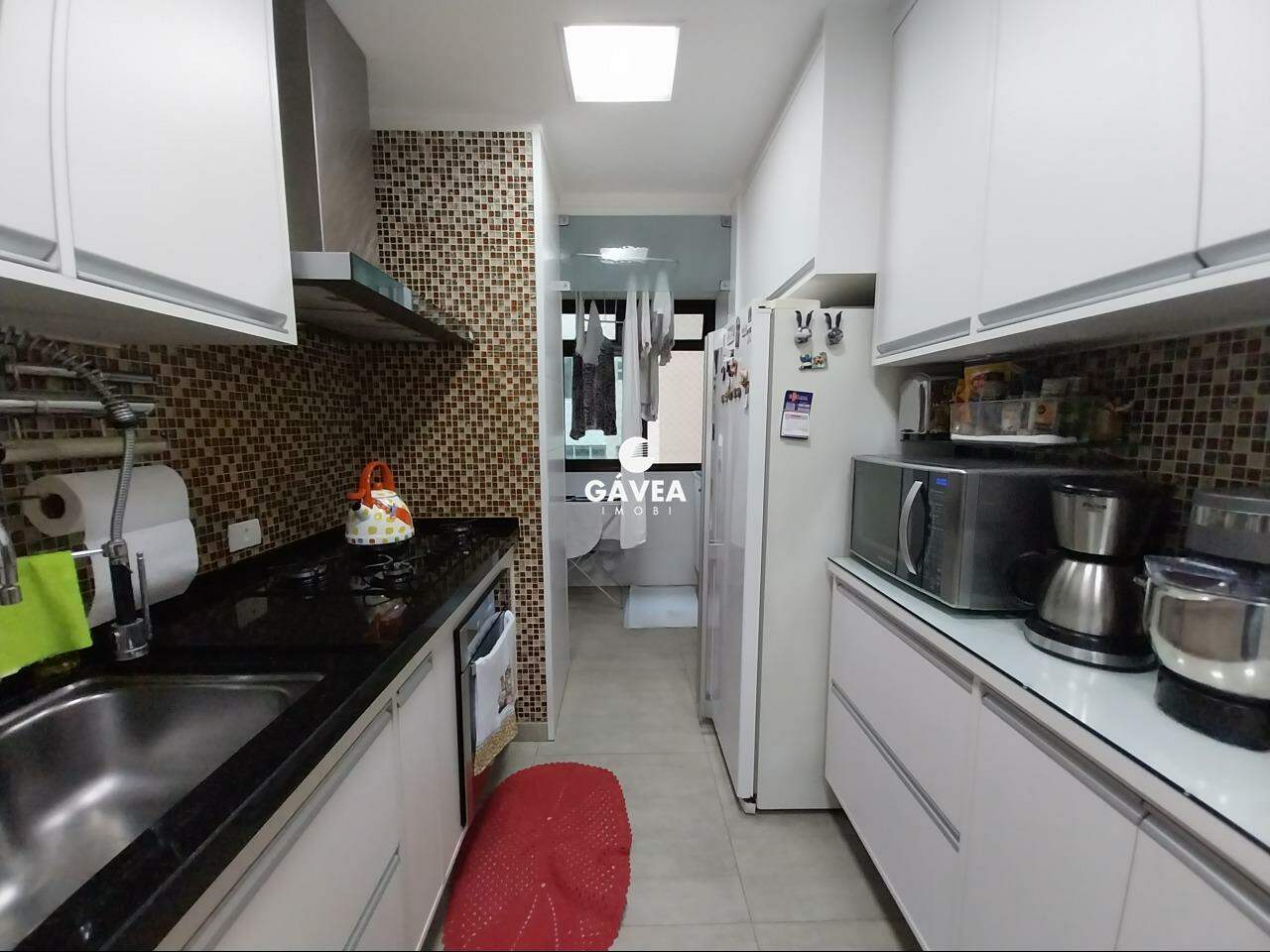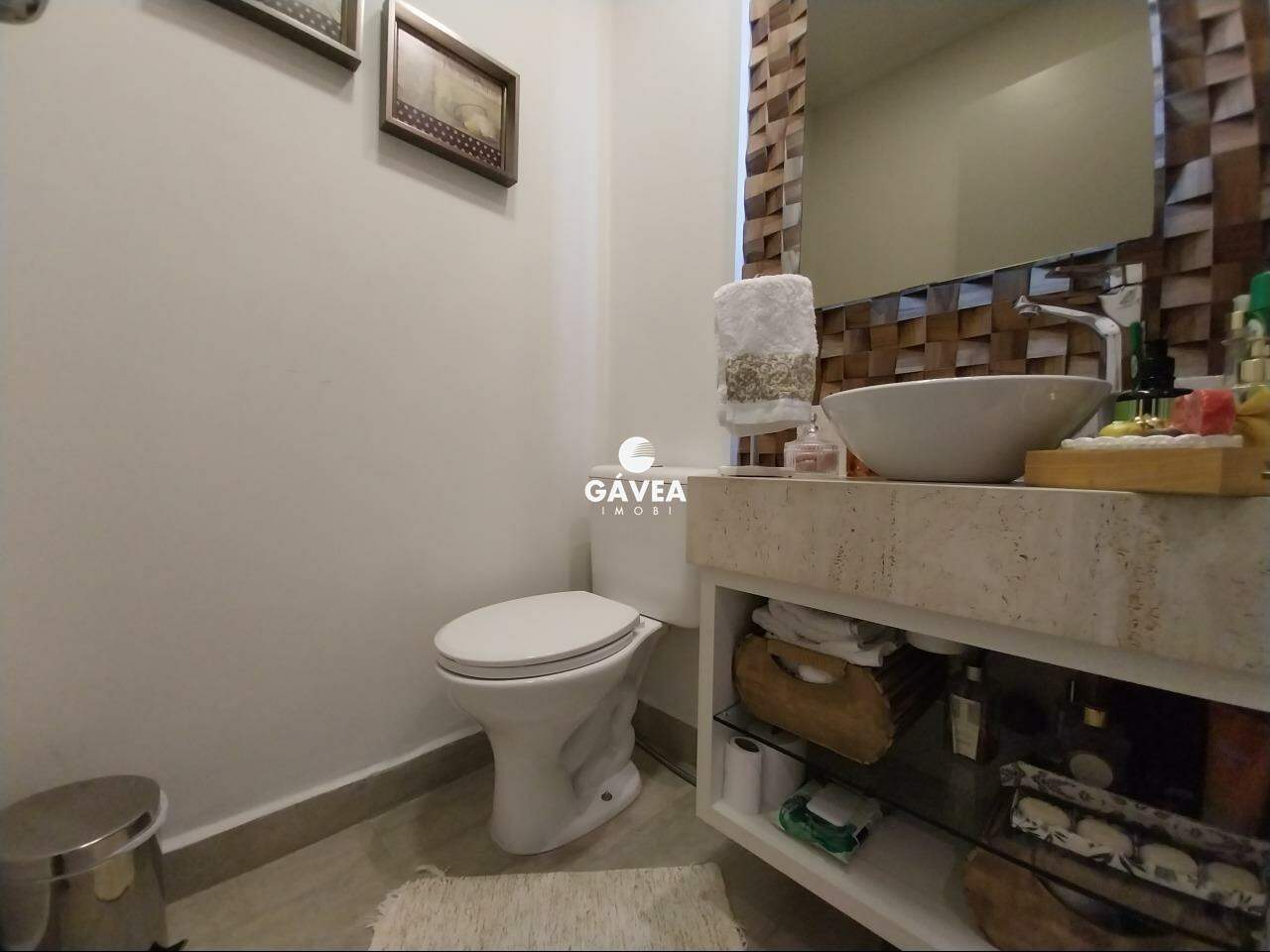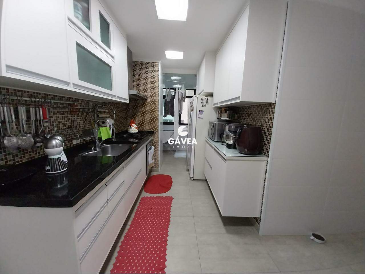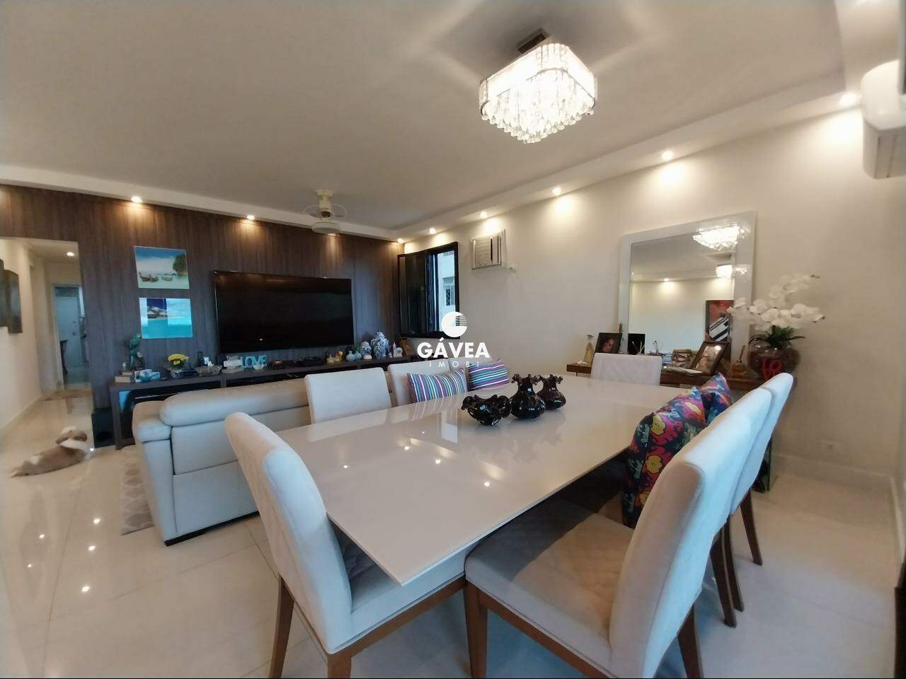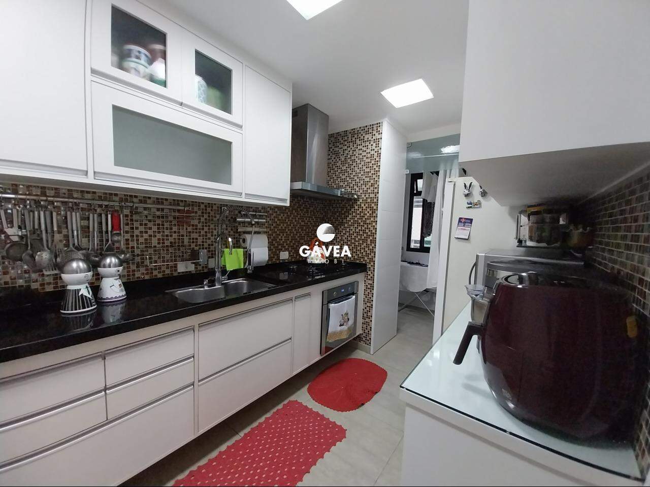 A cozinha é dividida em dois ambientes, totalmente planejada, e conectada a uma área de serviço separada, com despensa reversível em dependência de empregada. O imóvel também possui lavabo, adega/bar montado com elegância, ventiladores de teto nos quartos e sala, além de ar-condicionado, móveis planejados em todos os cômodos e duas entradas independentes.