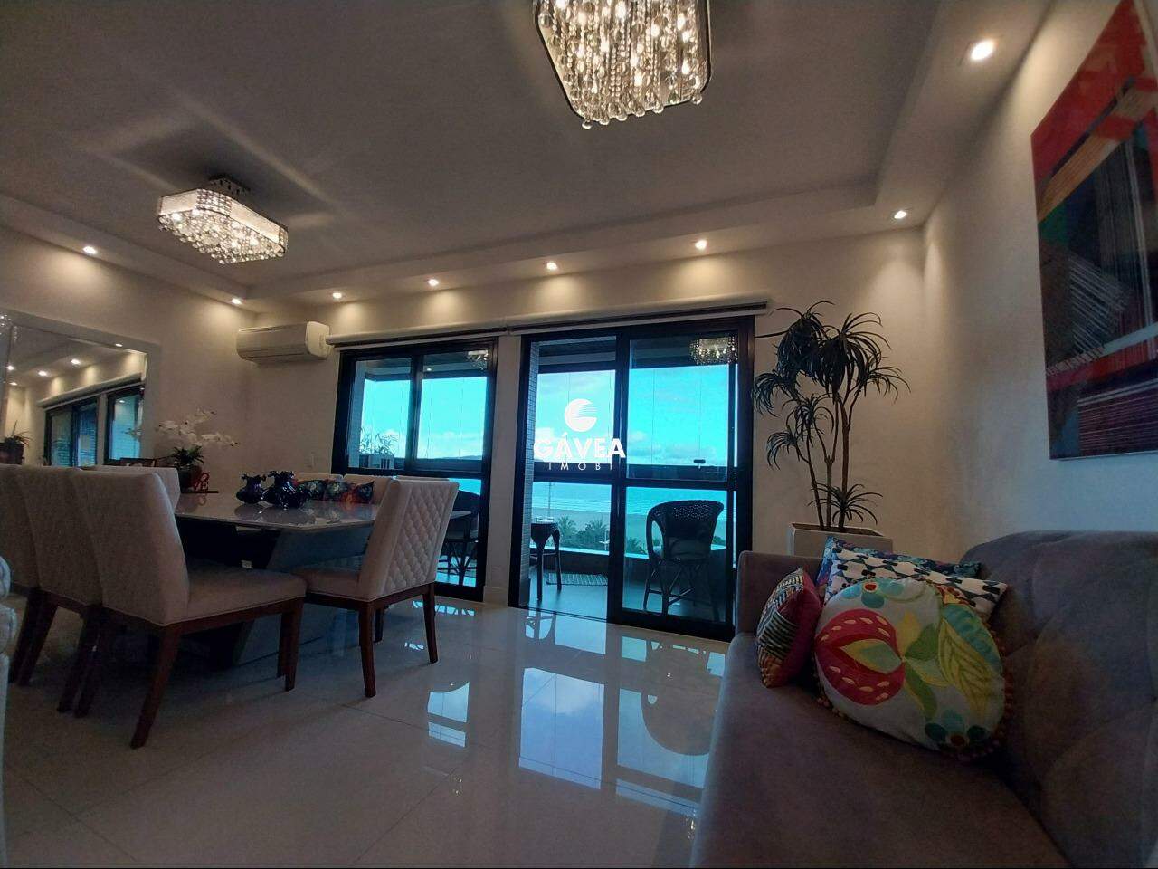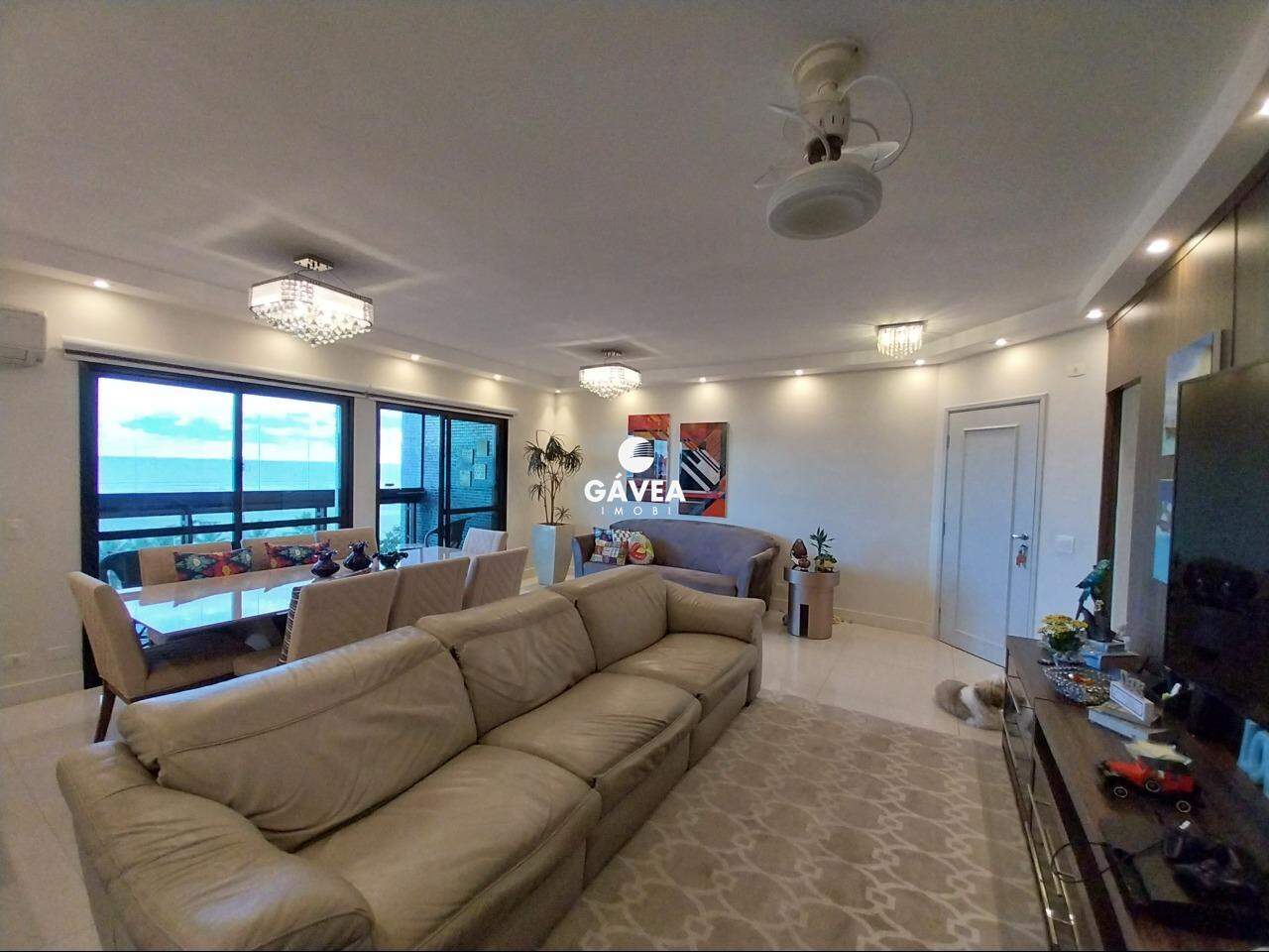 O apartamento conta com dois amplos dormitórios, ambos suítes e com vista direta para o mar, garantindo conforto e privacidade. A sala foi ampliada para três ambientes, mantendo a integração com a varanda de frente para o mar, perfeita para momentos de lazer e contemplação. A planta original previa três dormitórios, o que reforça a generosa metragem do imóvel.