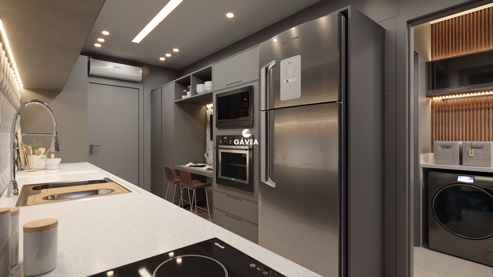 - Comodidades na Cozinha: Infraestrutura completa na cozinha para máquina de lavar louça, triturador, coifa, instalação de geladeira e filtro.