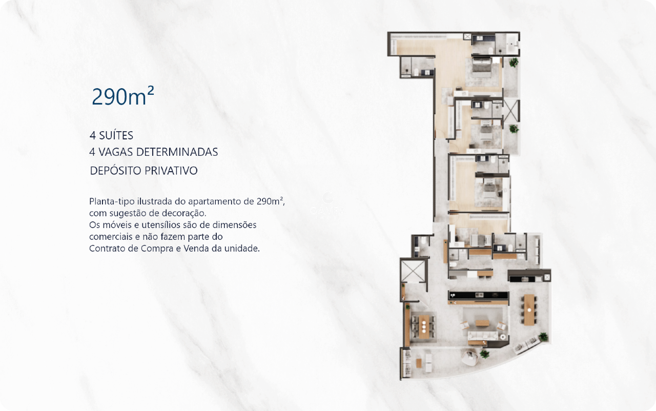 Apartamento com 4 suítes, 4 vagas na garagem, metragens de 291 m²