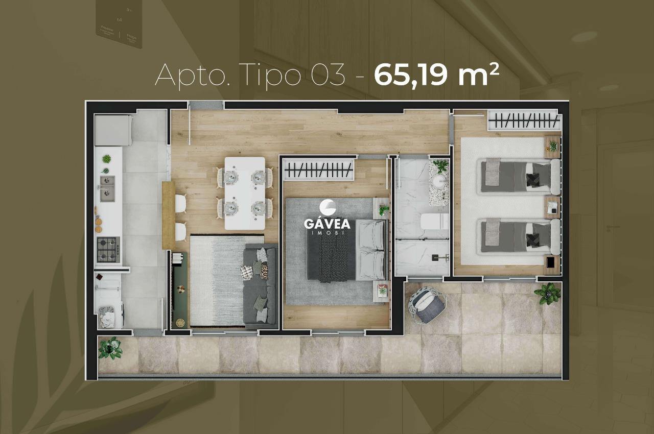 As unidades possuem plantas entre 65m² e 81m², com 2 dormitórios (opções com suíte) e amplas varandas, ideais para momentos de descanso e lazer em família.