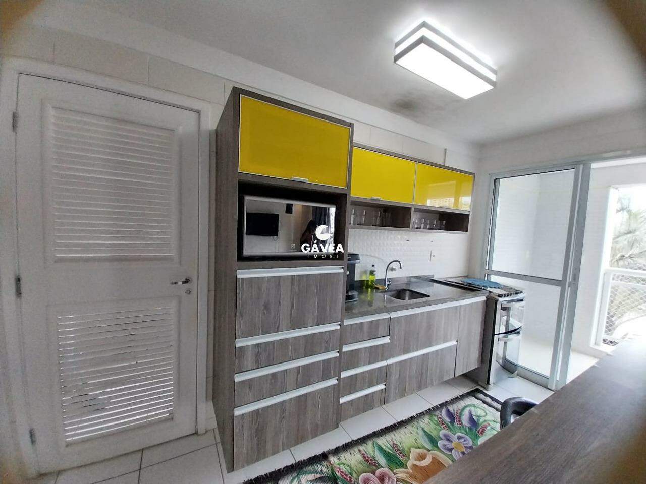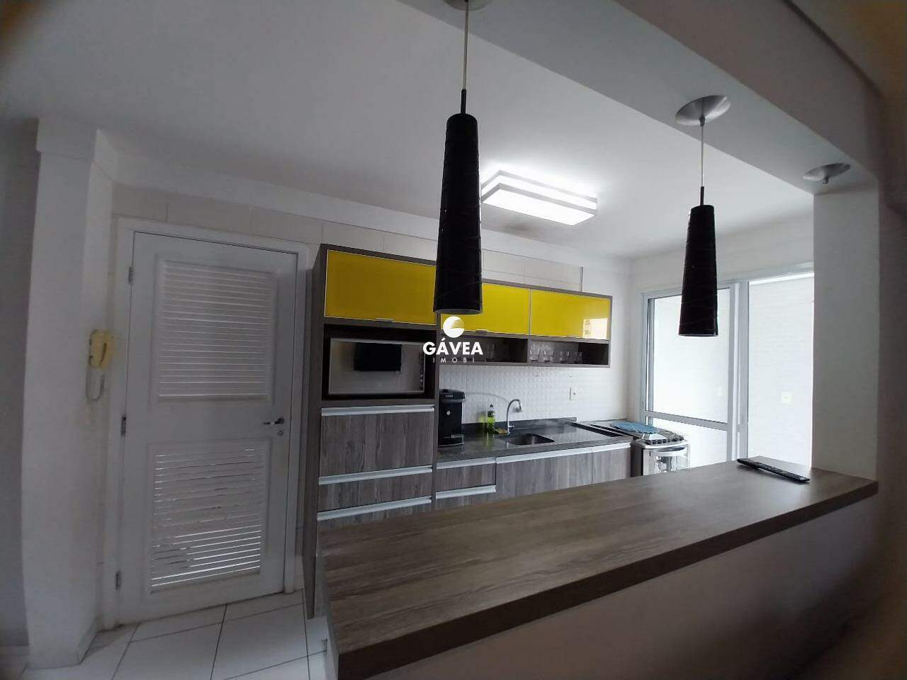 Cozinha com armários embutidos dando passagem a varanda