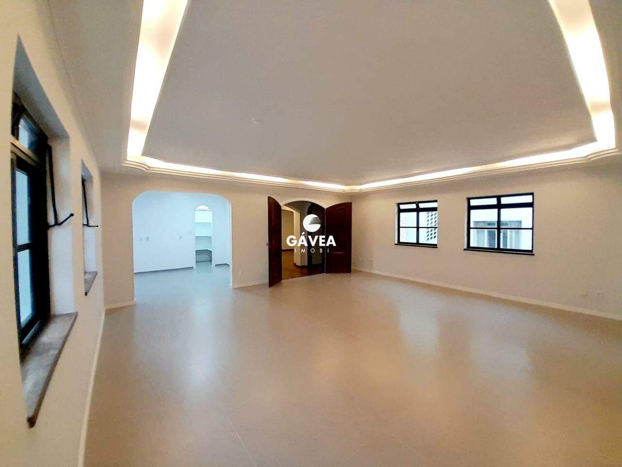 - Sala ampla com teto rebaixado, iluminação embutida;