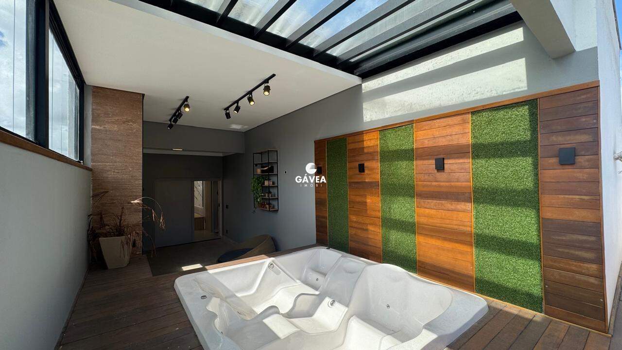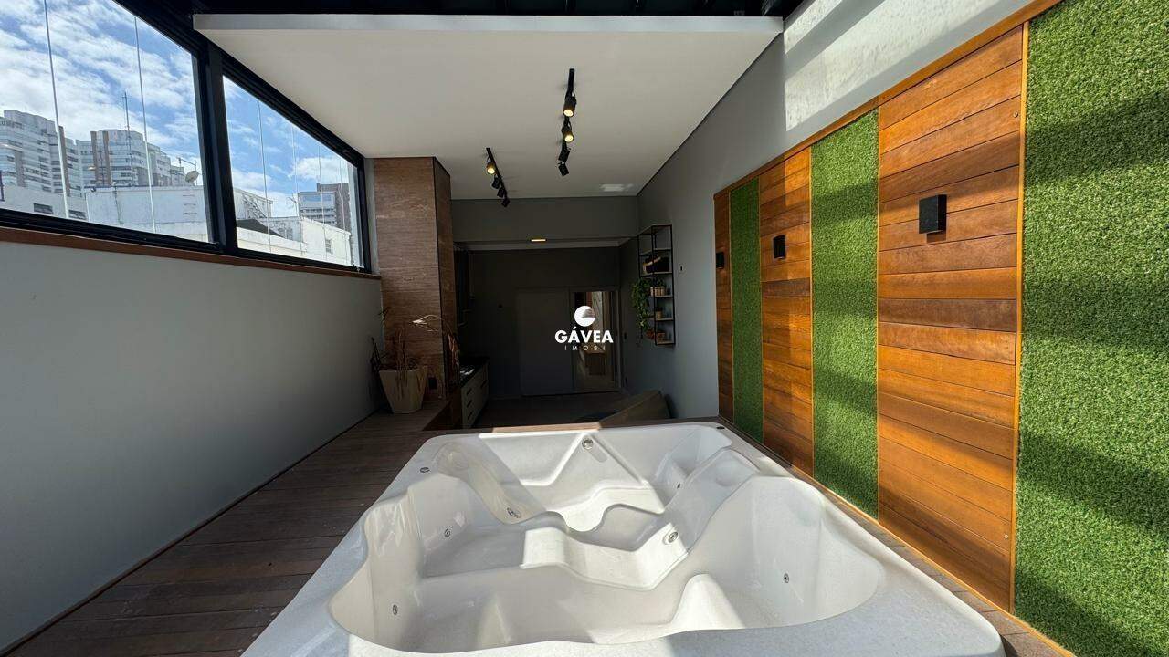 A planta oferece duas entradas, três dormitórios sendo uma suíte com vista mar, banheiro social, lavabo, sala ampla para dois ambientes integrada ao home office e um espaço gourmet espetacular com churrasqueira, spa aquecido para oito pessoas, teto retrátil e deck exclusivo integrado. A cozinha tem ilha central e armários planejados, além de área de serviço e banheiro de serviço. O imóvel conta com armários embutidos, infraestrutura completa para ar-condicionado e iluminação em LED.