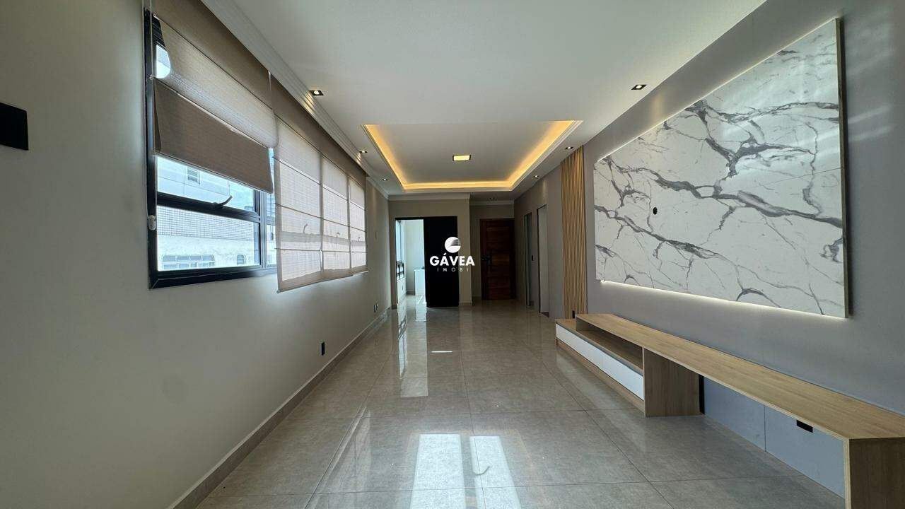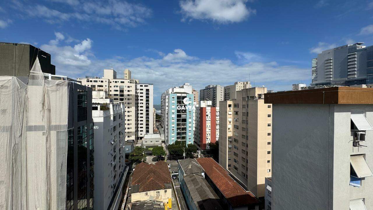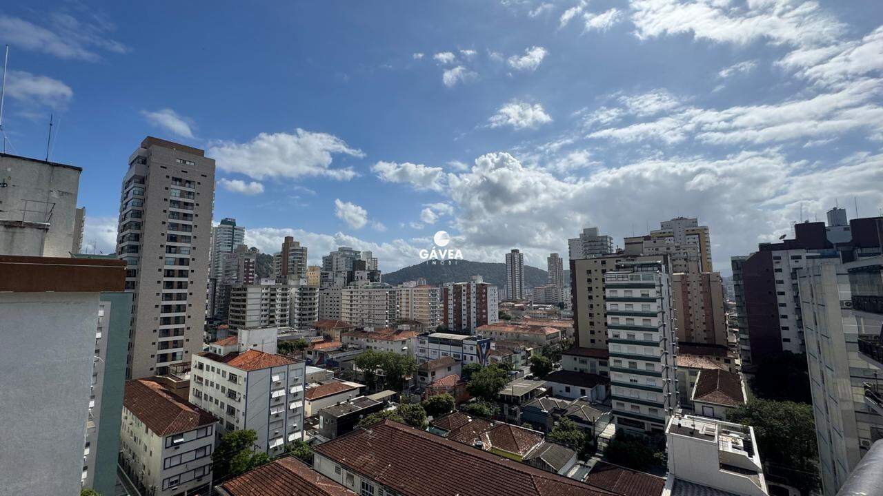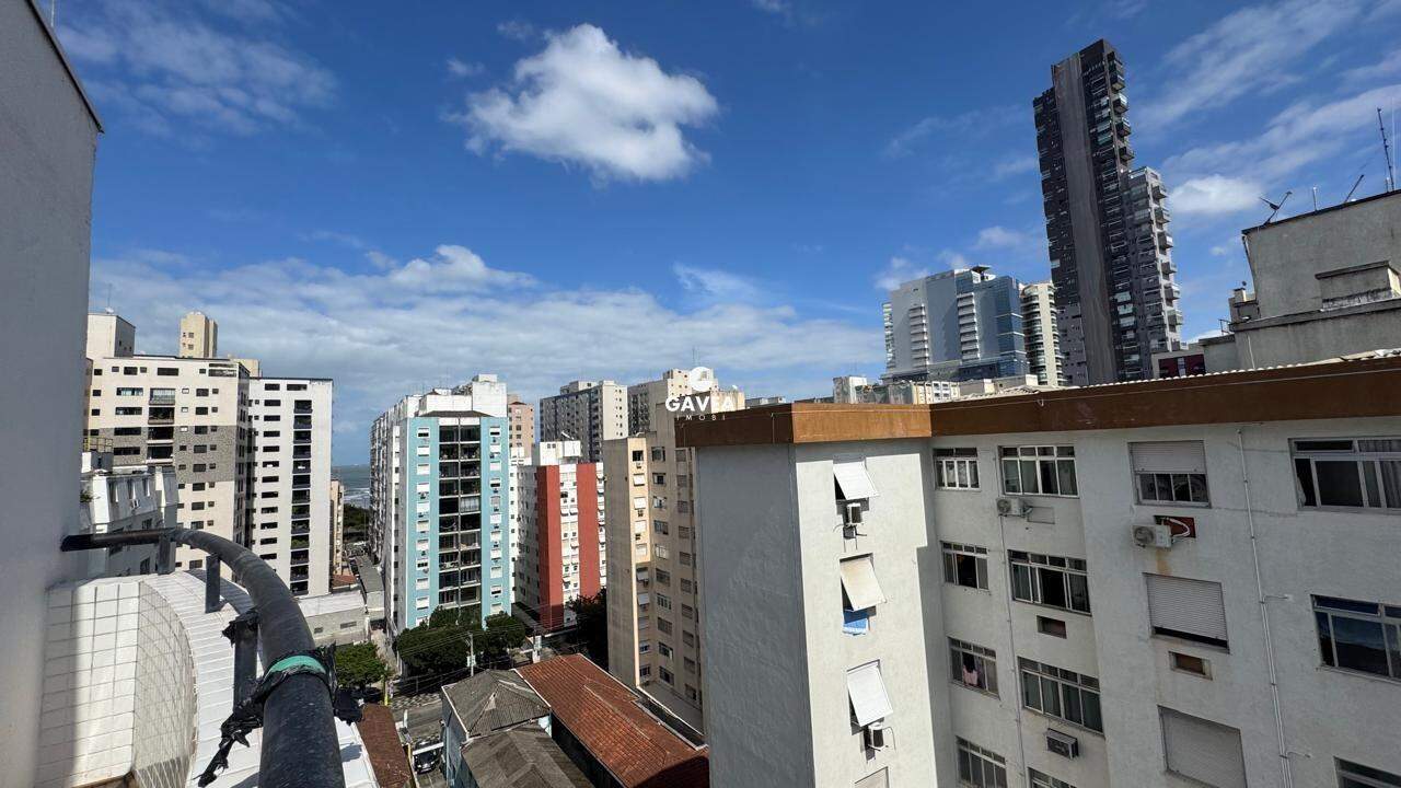 Cobertura penthouse impecável, totalmente reformada, a apenas 100 metros da praia da Pompéia. São 158 m² de área privativa mais 33 m² referentes a três vagas demarcadas paralelas, totalizando 191,66 m². Projeto contemporâneo que combina conforto, sofisticação e vista permanente para o mar em praticamente todos os ambientes.