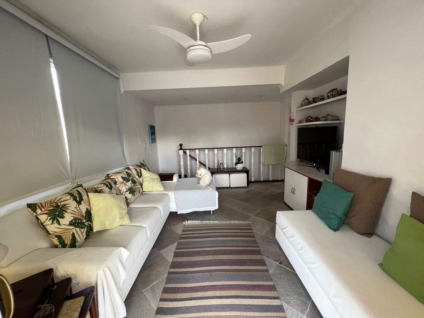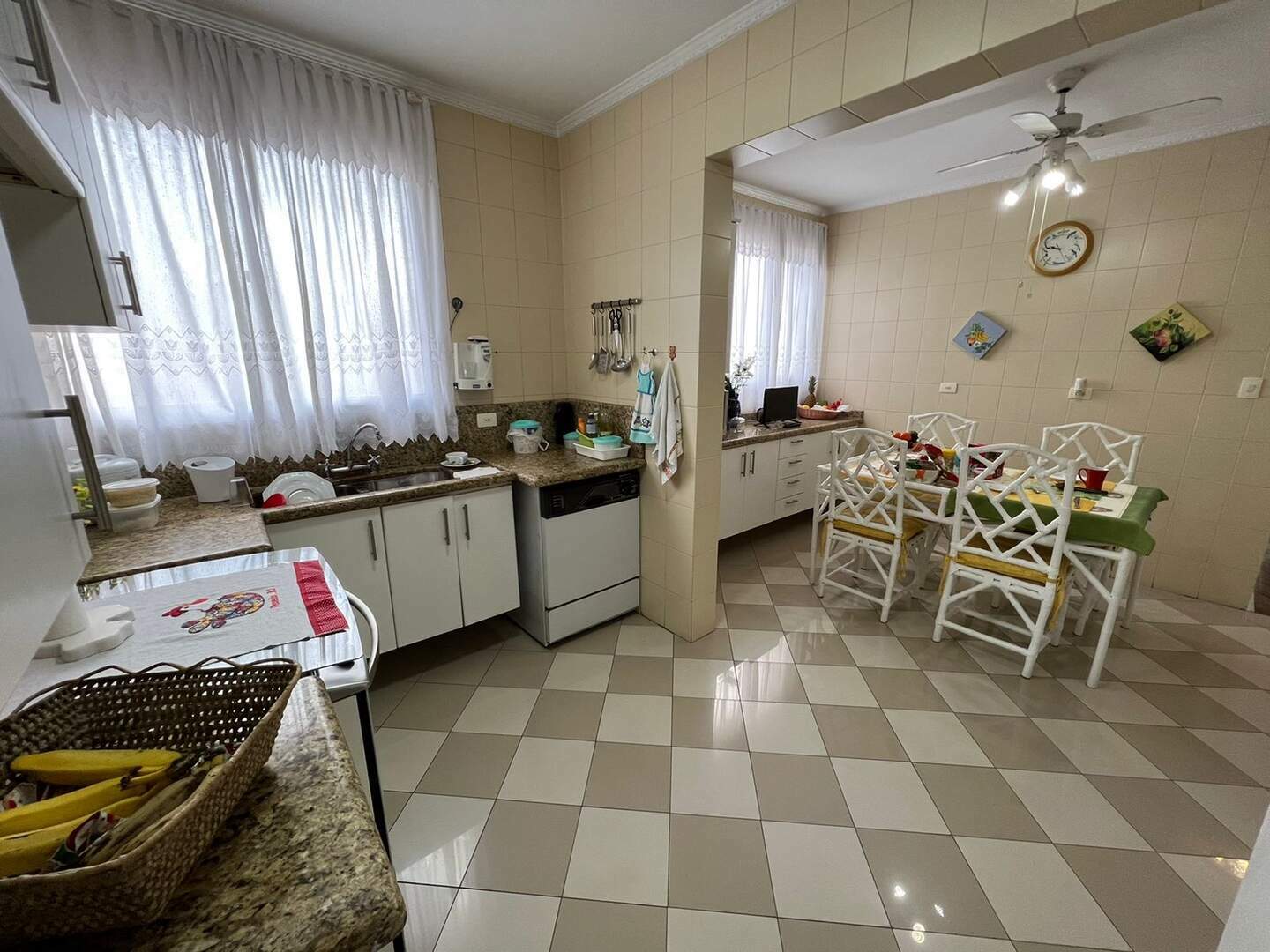 Sala para 2 ambientes, 3 dormitórios, 2 suíte, 1 banheiro social, 1 banheiro de serviço, cozinha e área de serviço.