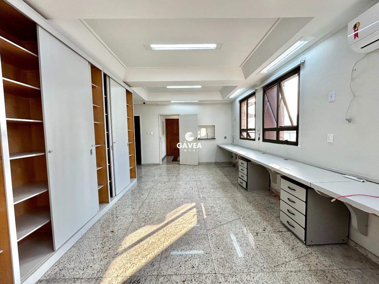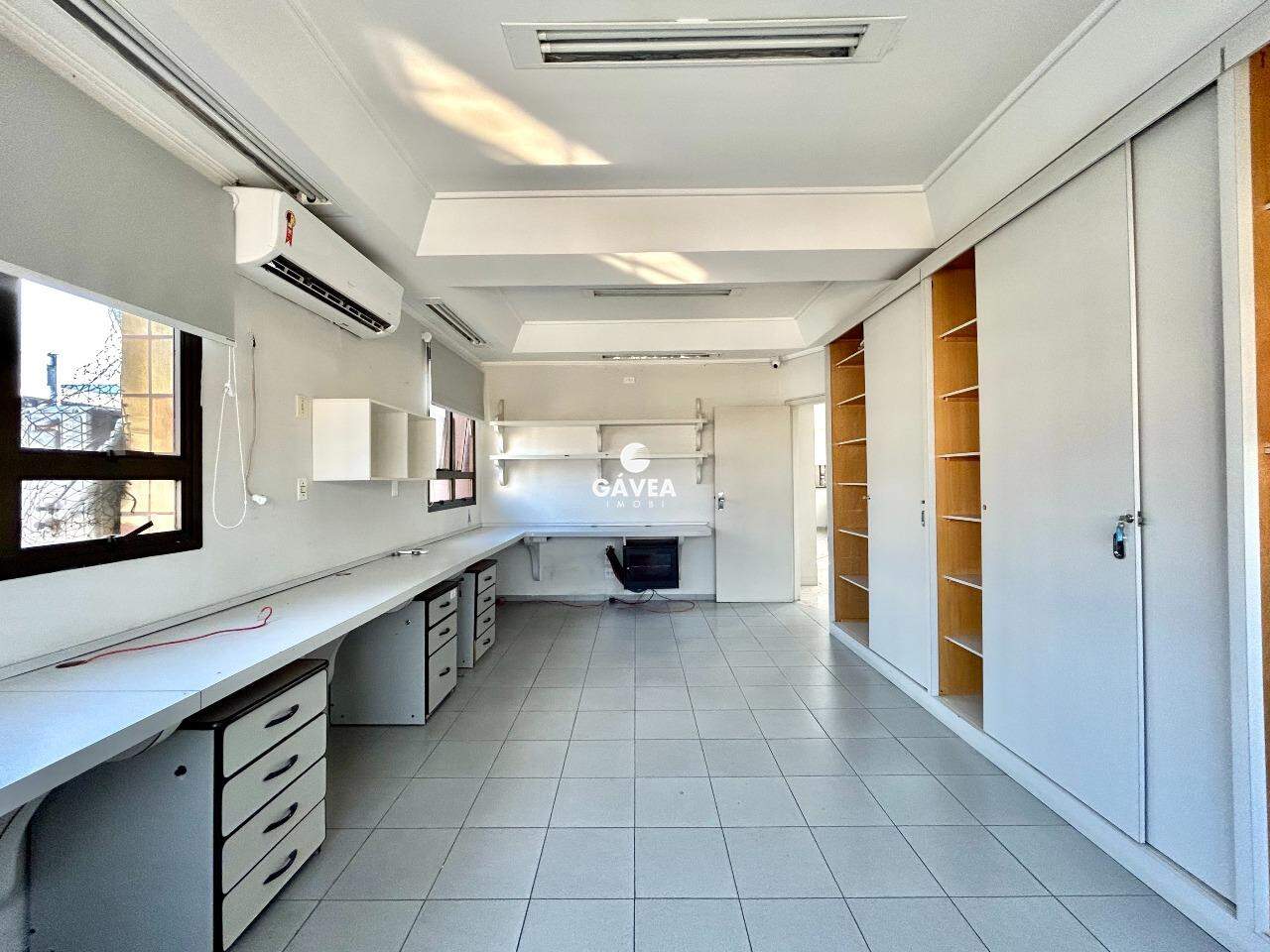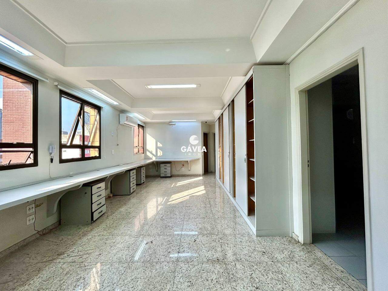 A sala conta com uma recepção, 4 amplas salas equipadas com mesas e armários embutidos, 3 banheiros e uma copa. Todos os ambientes são climatizados e possuem persianas, garantindo conforto e privacidade. Ainda conta com 2 vagas de garagem demarcadas e livres.