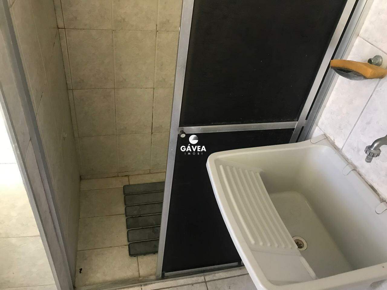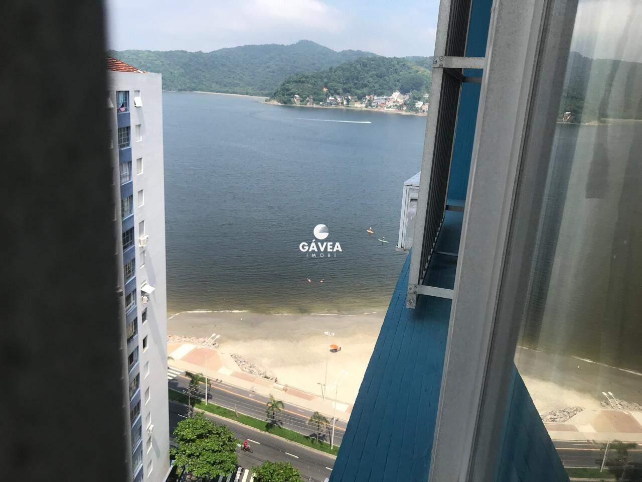 Excelente sala living à venda em São Vicente, com 32 m² bem distribuídos, toda em piso frio e com vista lateral para a praia.