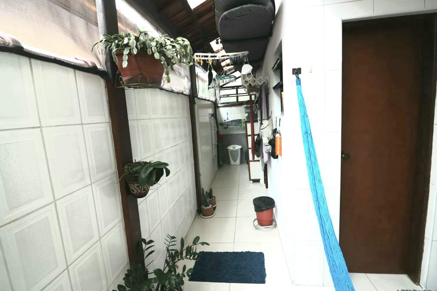 Quintal coberto c/ telhas transparentes.