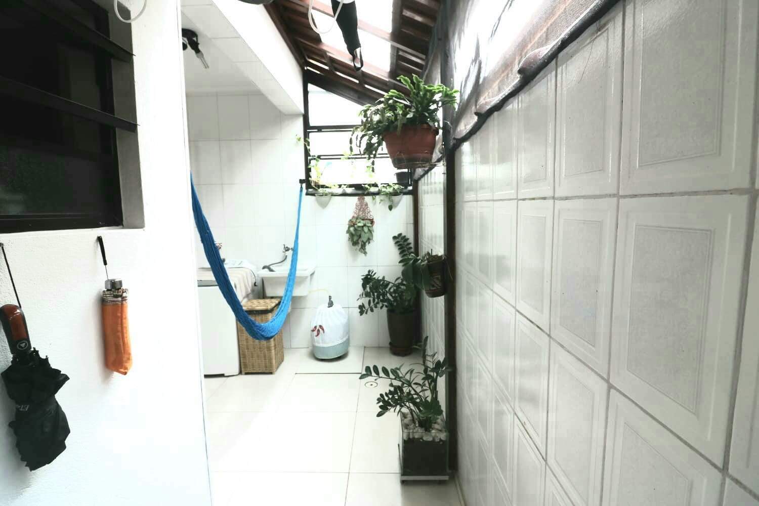 Área de serviço interna, coberta e c/ banheiro pequeno.
