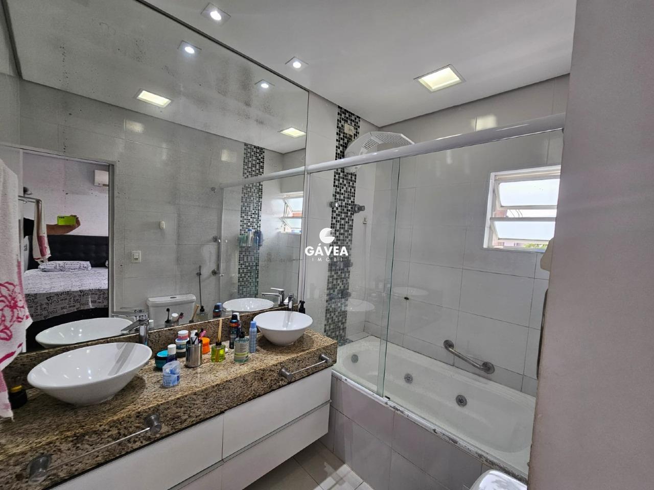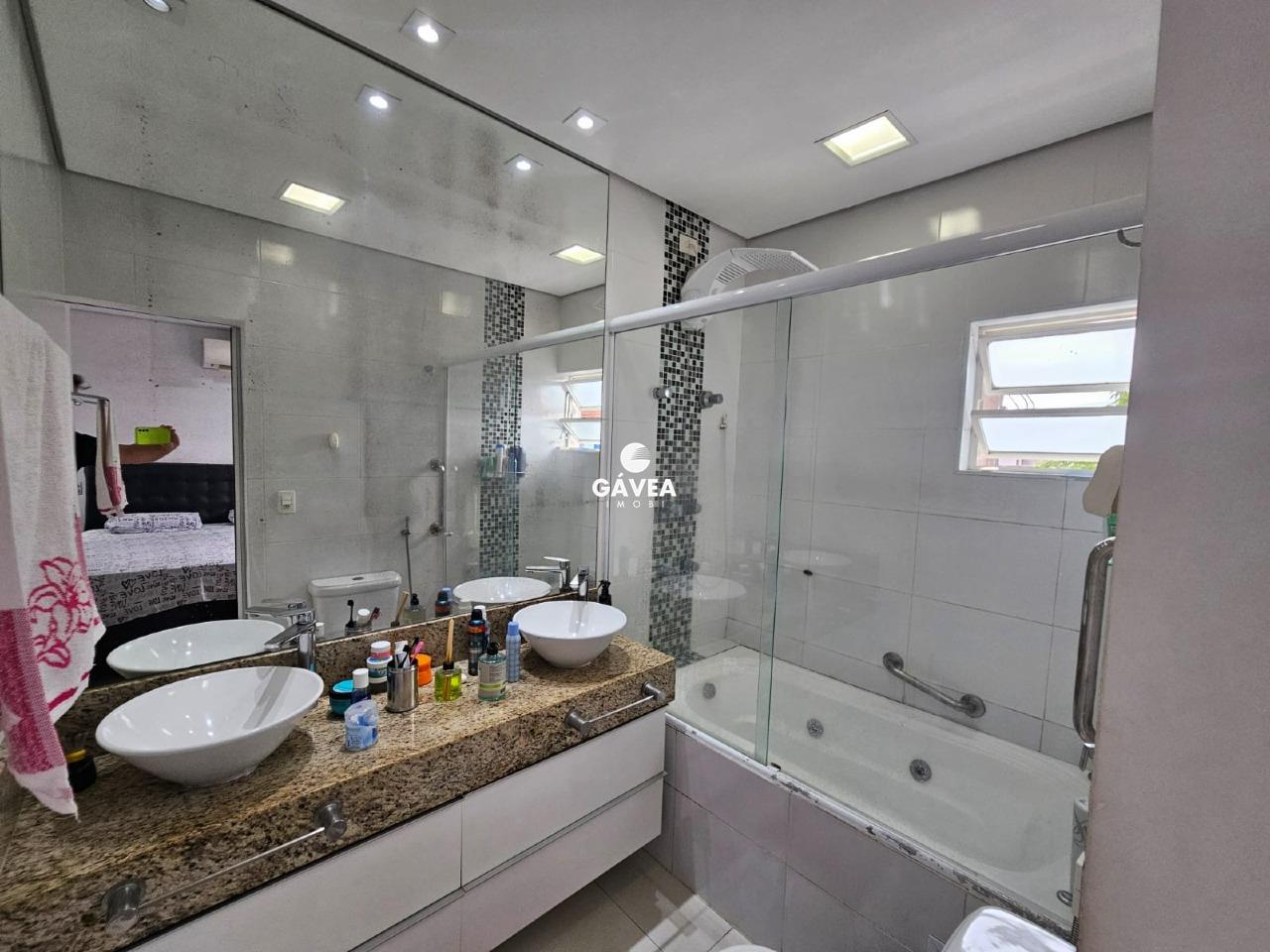 Venha desfrutar de uma casa com piscina, churrasqueira com quintal de fundos e lateral. Esse sobrado possui uma varanda no quarto principal e sua localização é privilegiada, próximo ao Supermercado Carrefour a vários pontos comerciais e de lazer, a praia e a Av. Presidente Wilson fica à poucas quadras, a sala contém dois ambientes com uma cozinha espaçosa, lavado e mais um banheiro de serviço no piso térreo. Esse imóvel é isolado de um lado e tem tudo que sua família necessita.