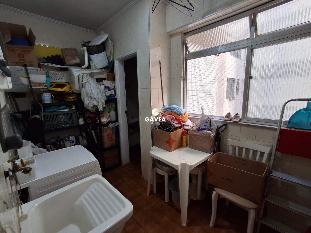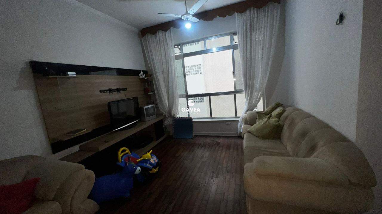Apartamento na quadra da praia no bairro da Pompeia, estando no 2º andar, mas equivalente ao 3º andar pois há 1 mezanino.